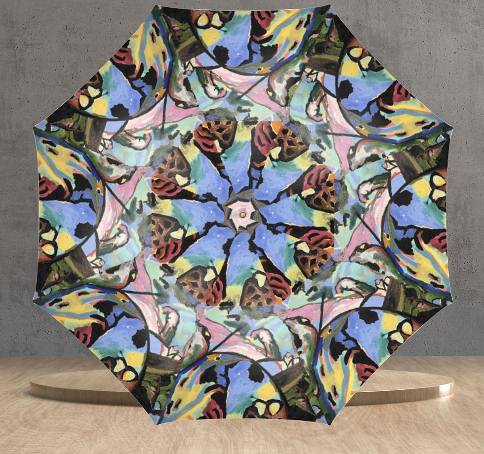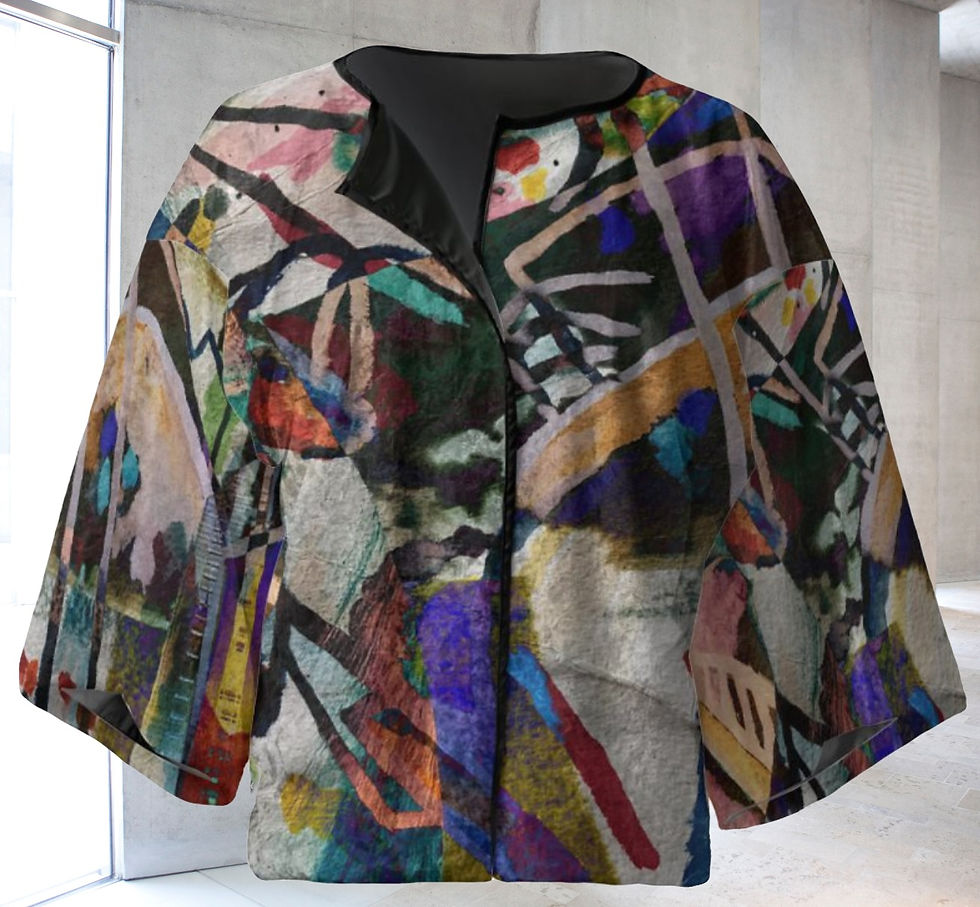 This is a Collection of garments With A Unique, Textile Design, watercolour painting Cartridge Paper, creating A Print on different Fabrics, My personal Homage to Kandinsky.