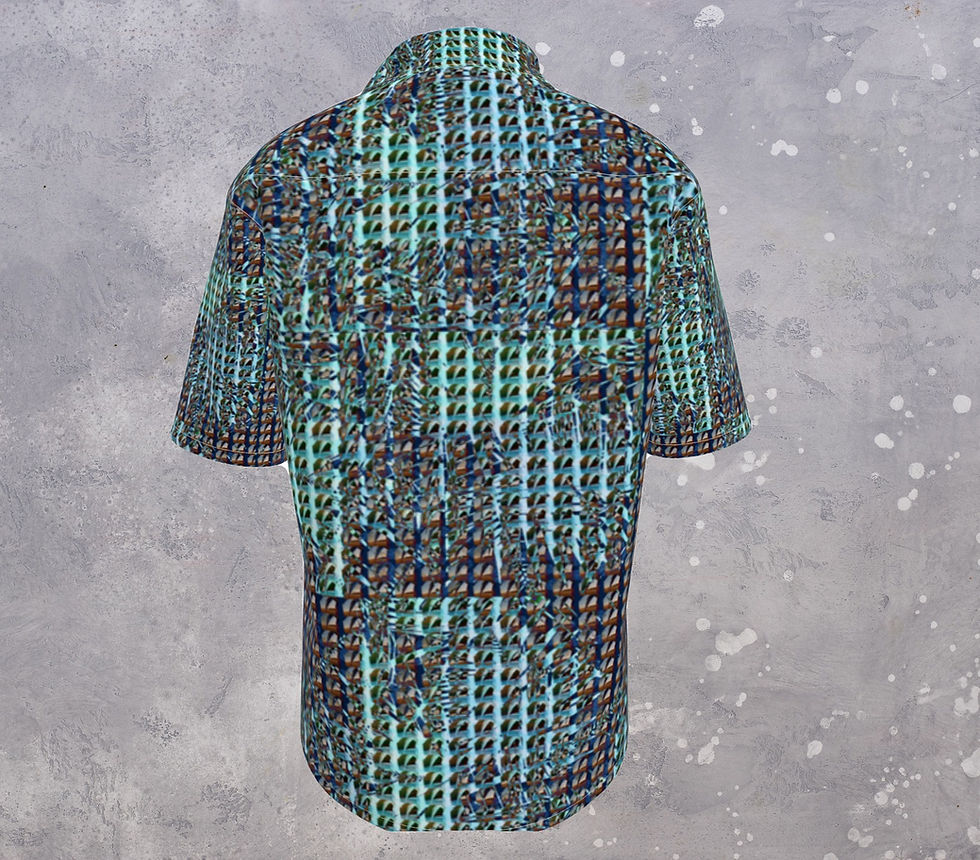 Short Sleeved Shirt,Luminous Blue with mythical beasts.